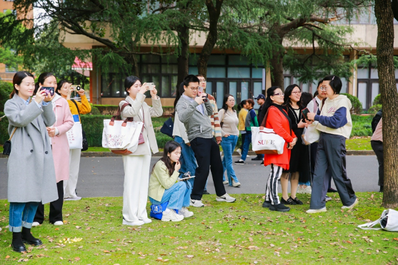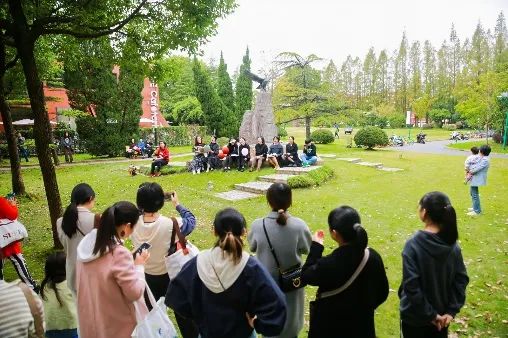 “志在云天”雕塑旁,新朋旧友,放声歌唱。大家循声而来,或驻足倾听,或轻声应和,旋律如秋日暖阳般绵延开去,悠悠地洒满整个春晖园,唤醒了无数深藏的记忆,拍照打卡的身影随处可见。此刻,音乐成为纽带,将校友情怀与秋日的明媚一同融入进这片芳草地,孩子们无忧嬉戏,欢笑与歌声交织,温馨的气息涌动在每个角落。