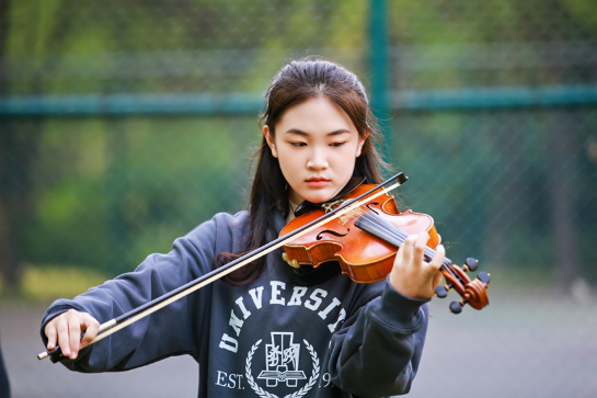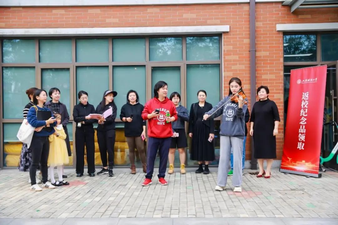一曲“我的祖国”,让不同年龄段有共同爱好的校友们在返校中邂逅,2024级杨子萱同学演奏的小提琴前奏婉转悠扬,1979级校友、崔秋屏老师饱含深情清唱的主歌高亢嘹亮,校友们齐合唱,主歌与副歌交融升华。走过不同的路,看过不同的风景,各自精彩,各自发光,在上财相遇,在歌声中共鸣。