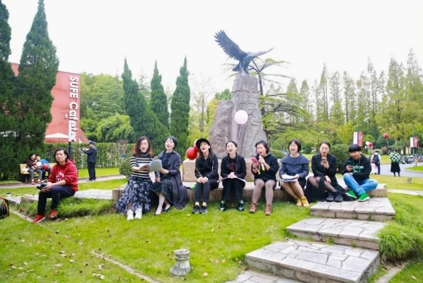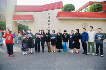 校友们从武川路校区创业中心出发,一路伴着歌声与笑声走过了羽毛球馆前的芳草地、地铁长廊,新食堂,在“志在云天”上财雄鹰前放歌,流连于国定路校门内外,最后在老校门前为本次活动画上圆满的句号。