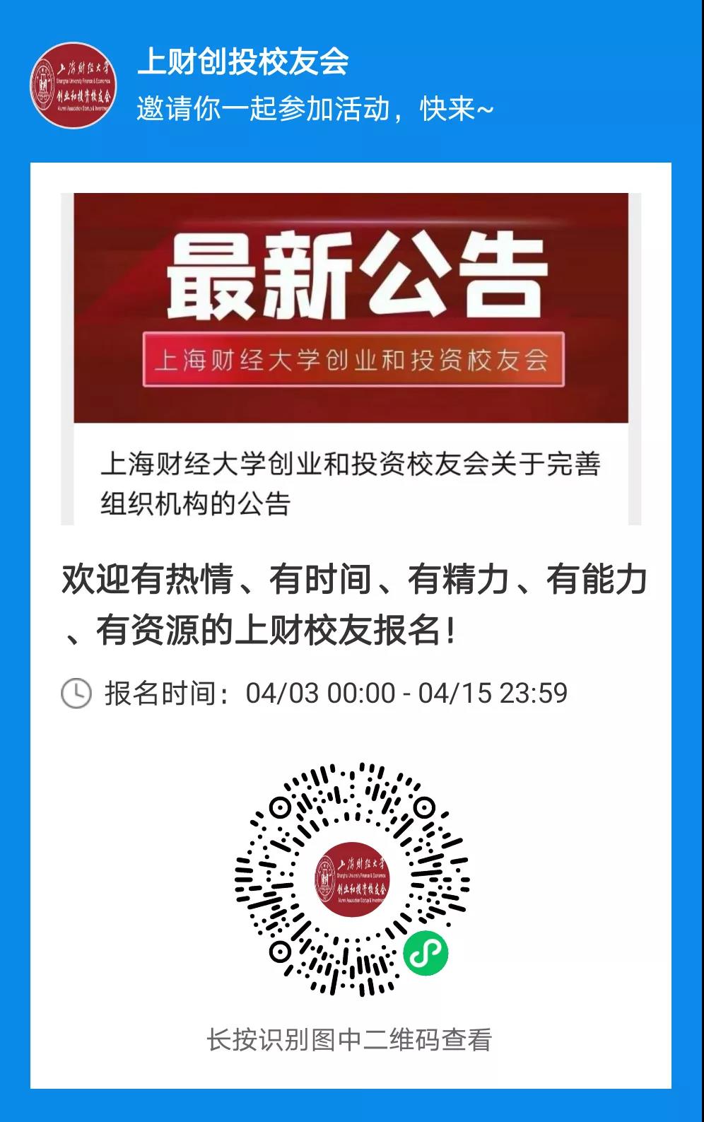 根据上海财经大学创业和投资校友会(以下简称创投校友会)第一届理事会通过并报请校友总会同意的《上财创投校友会完善组织建设的总体方案》,特就本次工作的相关事项公告如下: