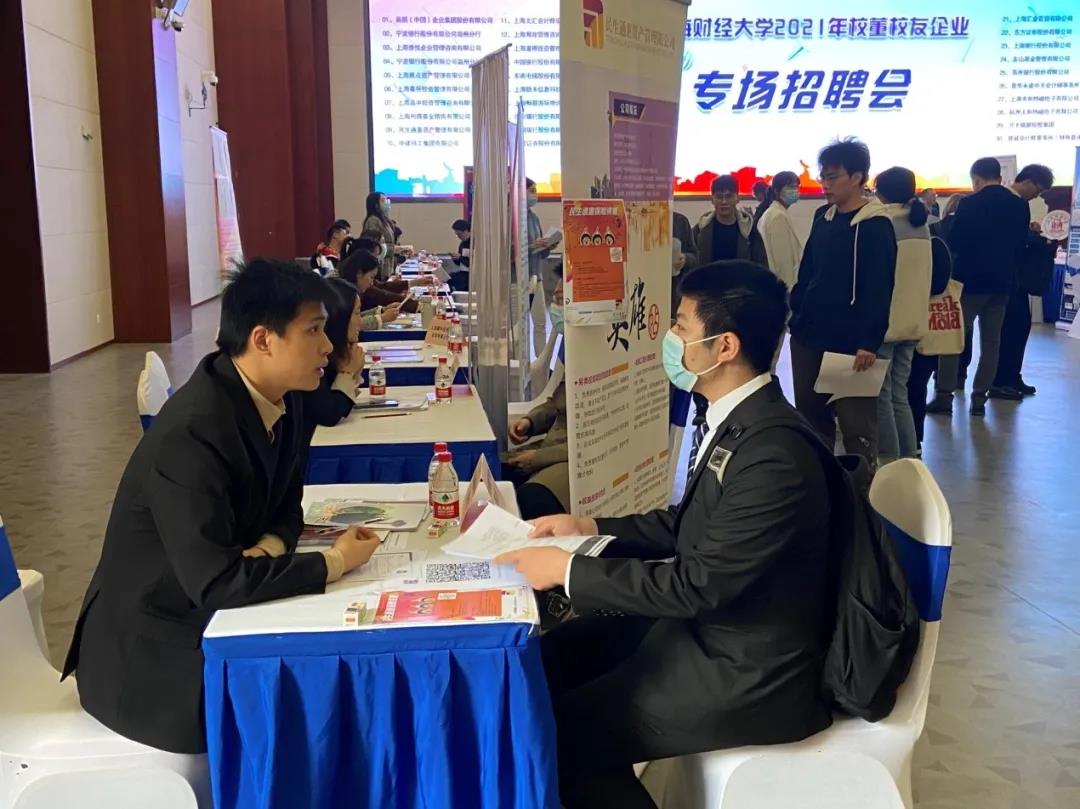 12时许,校董校友企业HR陆续抵达会场。校合作发展处、学生就业指导中心热情接待各位HR,并向其介绍我校2021届毕业生生源信息和求职动态。1时许,学生陆续抵达会场,招聘会有序拉开序幕。