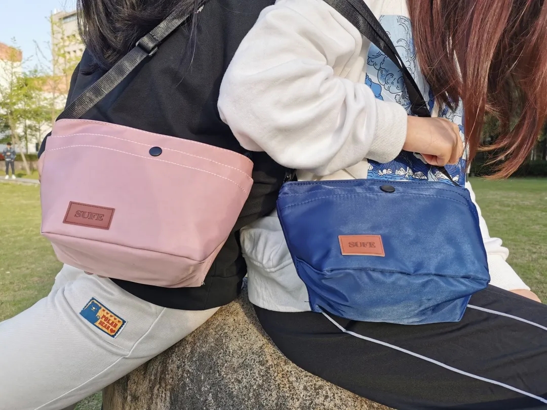 6种颜色, 选择多样。小巧饺子包,适用于多种场合,印有SUFE标签,是你搭配里的小巧思。