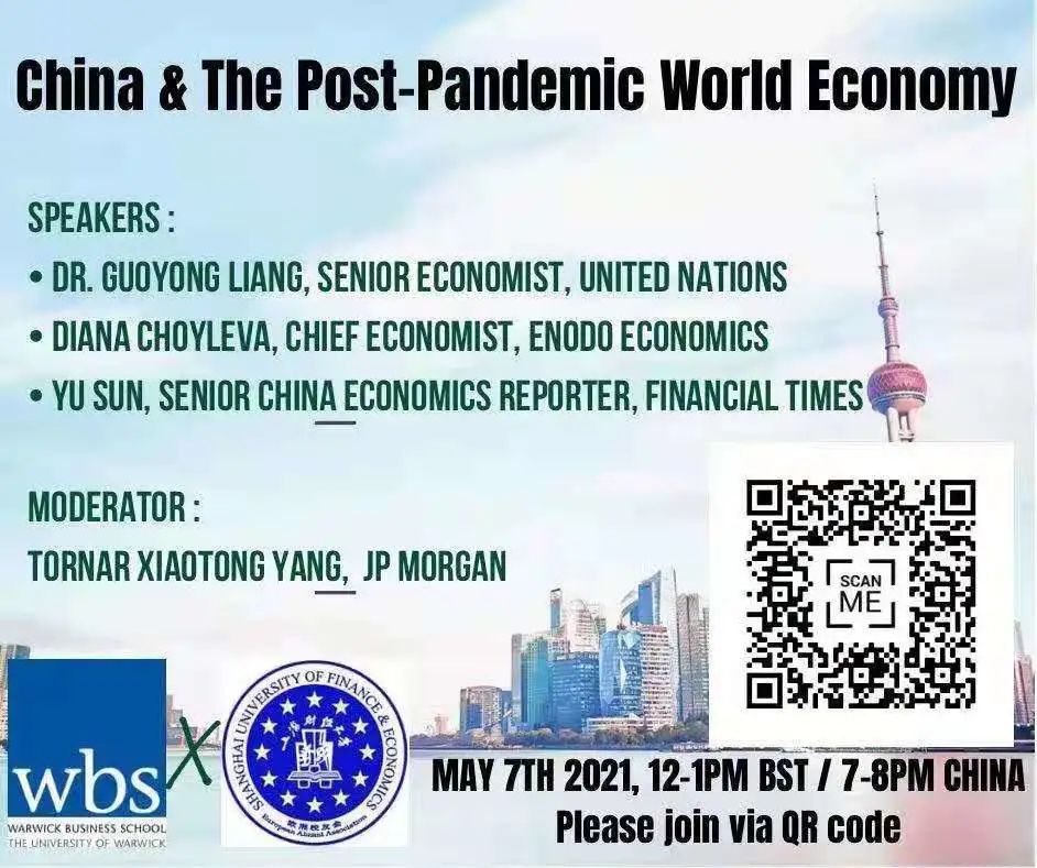 To start our long-planned “开讲” forum, SUFE European Alumni Association is collaborating with Warwick Finance Professional Network to bring you this event on China and the post-pandemic world economy!