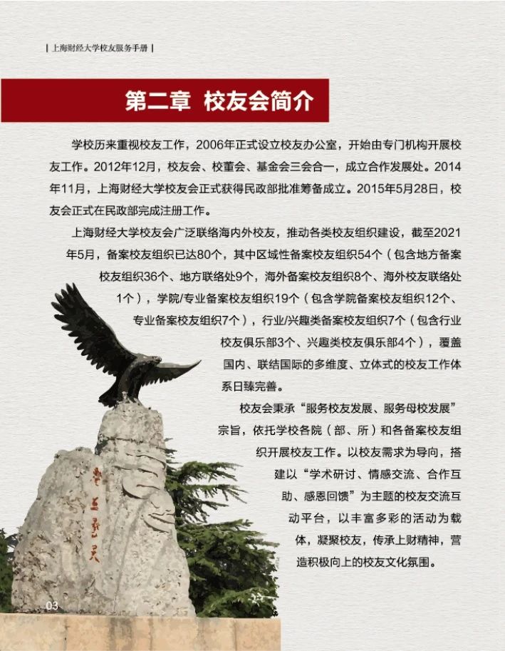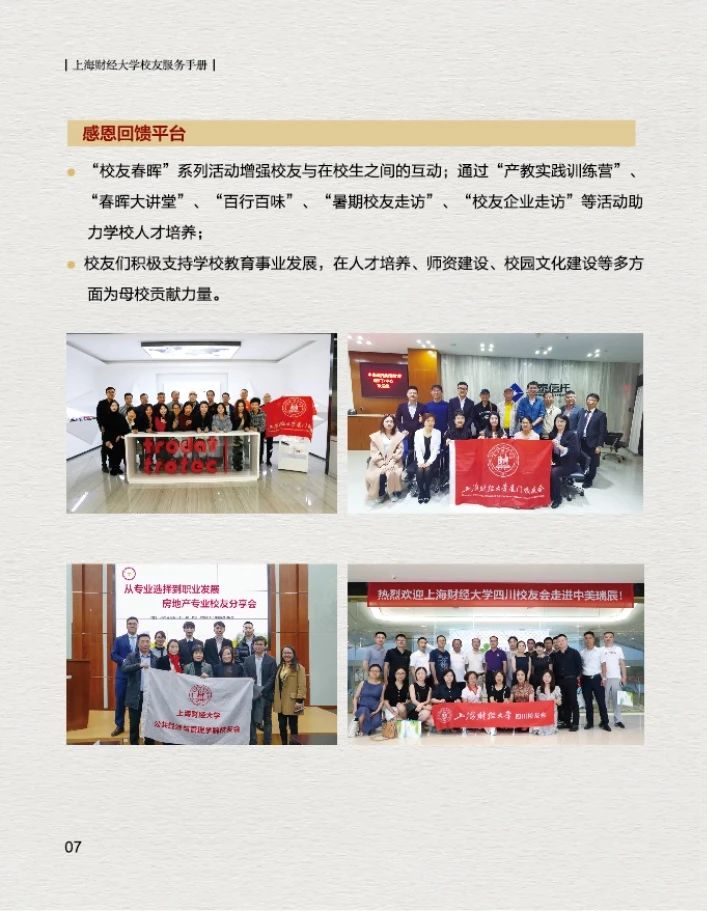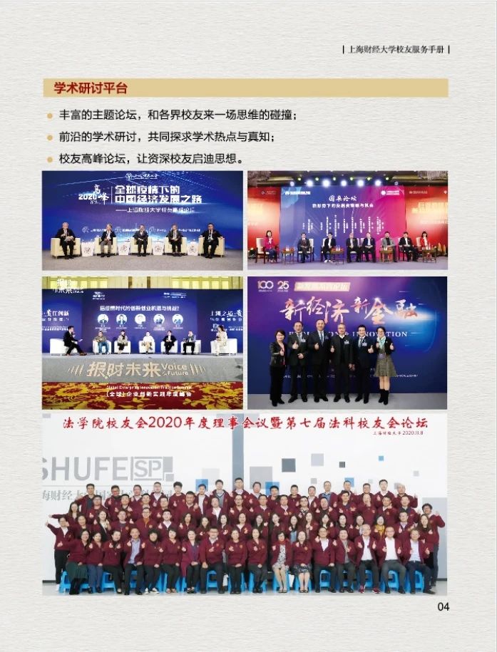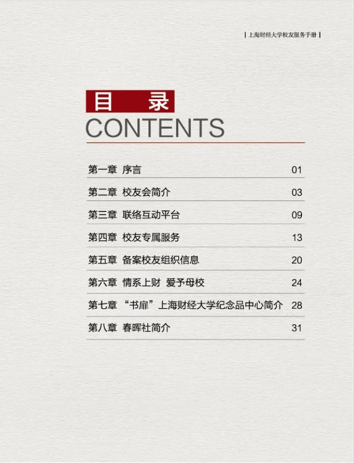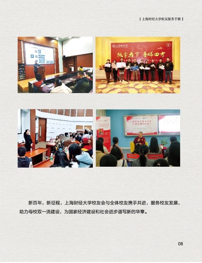 为了更好的为广大校友提供服务,上海财经大学校友会秘书处特制作的《上海财经大学校友服务手册(2021版)》上新啦~,在这本小小的手册中您可以了解到: