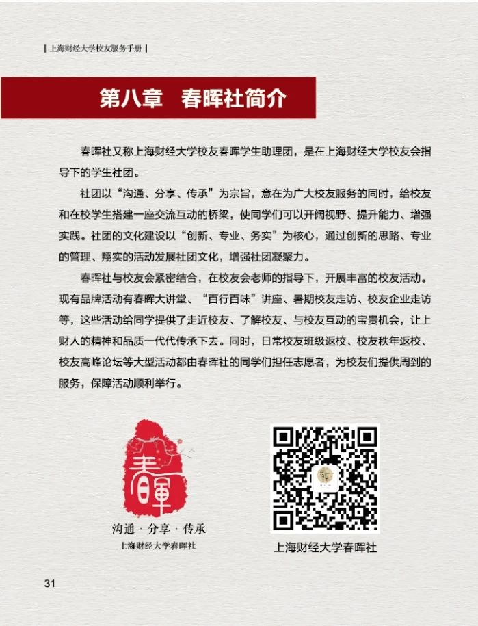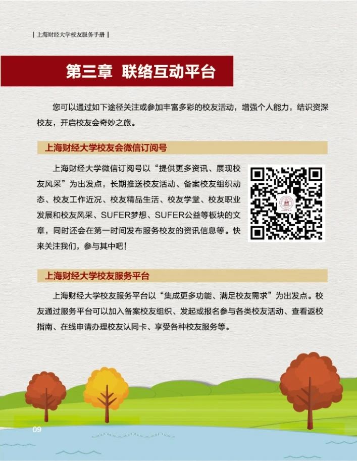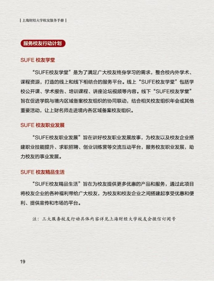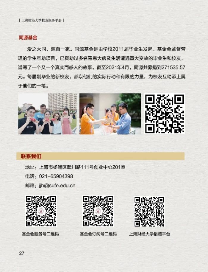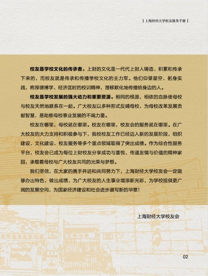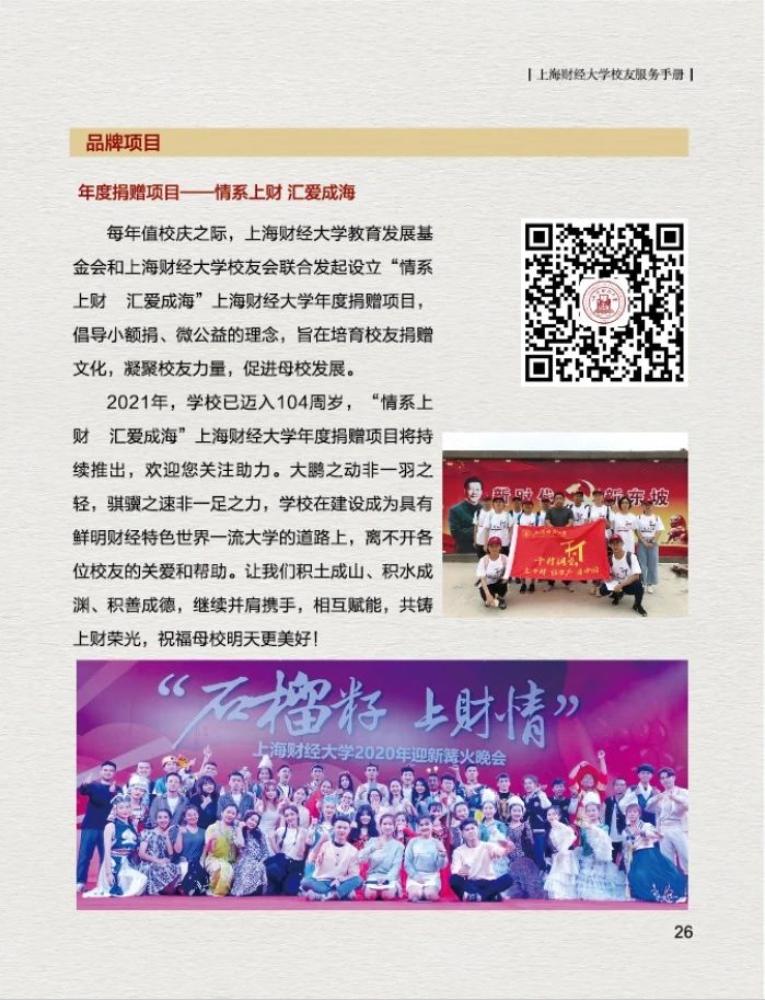 为了更好的为广大校友提供服务,上海财经大学校友会秘书处特制作的《上海财经大学校友服务手册(2021版)》上新啦~,在这本小小的手册中您可以了解到: