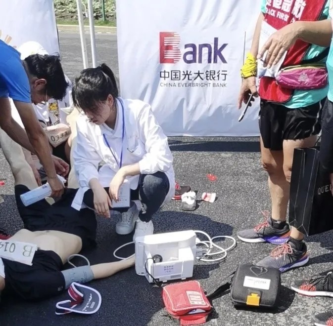 (图为吴征校友在处理一位中暑的运动员)