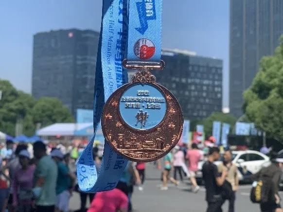 此次赛事的完赛奖牌设计主题为《迭变•绽放》,蓝色水波纹理围绕着正中央的“国际静安”,诠释着每位选手奔跑国际静安全面绽放的幸福、骄人姿态,寓意着赛事组委会对女性跑友们的美好祝福:愿每一位选手奔跑国际静安、卓越城区,丰富自我,超越自我,绽放更好的自我~