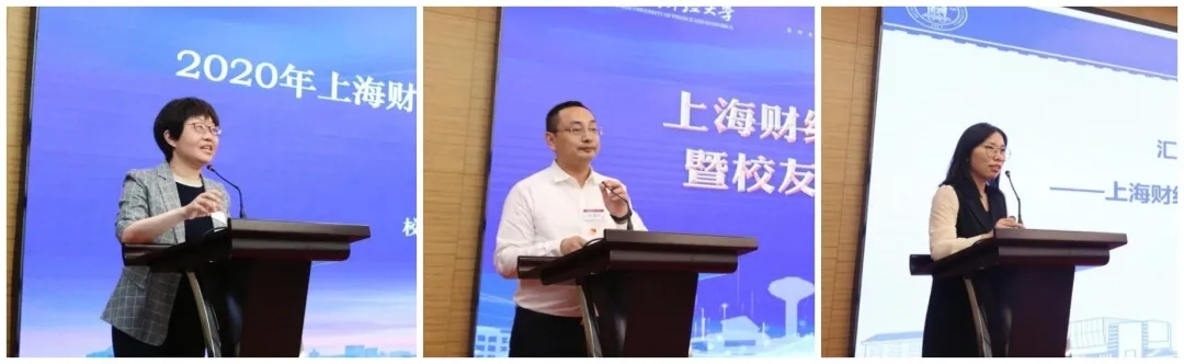 在校友组织交流发言环节,上海财经大学北京校友会杨青会长分享了过去一年北京校友在积极参与疫情防控、支持母校复工复课、设立“北极星”基金捐赠项目等情况。上海财经大学厦门校友会朱玥会长从三方面分享了厦门校友会的工作理念、组织建设和2020年度开展的近二十多场各类校友活动;上海财经大学公共经济与管理学院校友会邬咏梅秘书长分享了学院校友会在抗疫宣传、为爱捐赠、学术育人、校友面对面、党建联建和校友“行万里路读万卷书”活动六个方面获得的成绩和感悟,并表示校友会将在新一届理事会带领下,从“重在校友,依托校友、服务校友、发展校友”四个方面出发,持续推进校友工作发展。校友马拉松俱乐部会长柳东雳校友用一张张充满了健康活力的活动照片,展示了校友组织过去一年参与建党百年活动和支持亚沙/戈赛活动的精彩故事,传达了上财人健康积极向上的运动精神。由于疫情影响,上海财经大学欧洲校友会杨群会长以视频方式向与会人员分享了在抗击疫情、关怀校友健康、组织线上讲座以及联合兄弟校友会举办线上春晚的经验与收获。