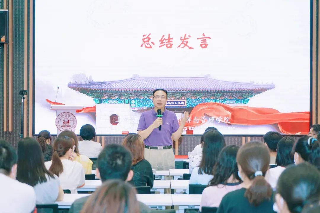 随后由徐飞常务副校长作总结发言。他语重心长地指出,当代青年要具有家国情怀,去做自己命运、职业、情绪的主人。人生短暂,而唯有读书才能增加自己人生的广度、深度、厚度与跨度,这也是读书的意义所在。徐校长强调,读书要敢于走出舒适区,去读那些让人觉得“痛苦”的书,去读那些高难度、有挑战、哲学思辨的书。他建议同学要带有批判性思维去读书,以“以人为本”举例,用“为什么以人为本”“以什么样的人为本”和“以人的什么为本”这三个问题引发同学的思考,并叮嘱同学们要敢于颠覆,敢于解构,敢于反省,敢于追问,敢于研讨,让读书在校园里蔚然成风。
