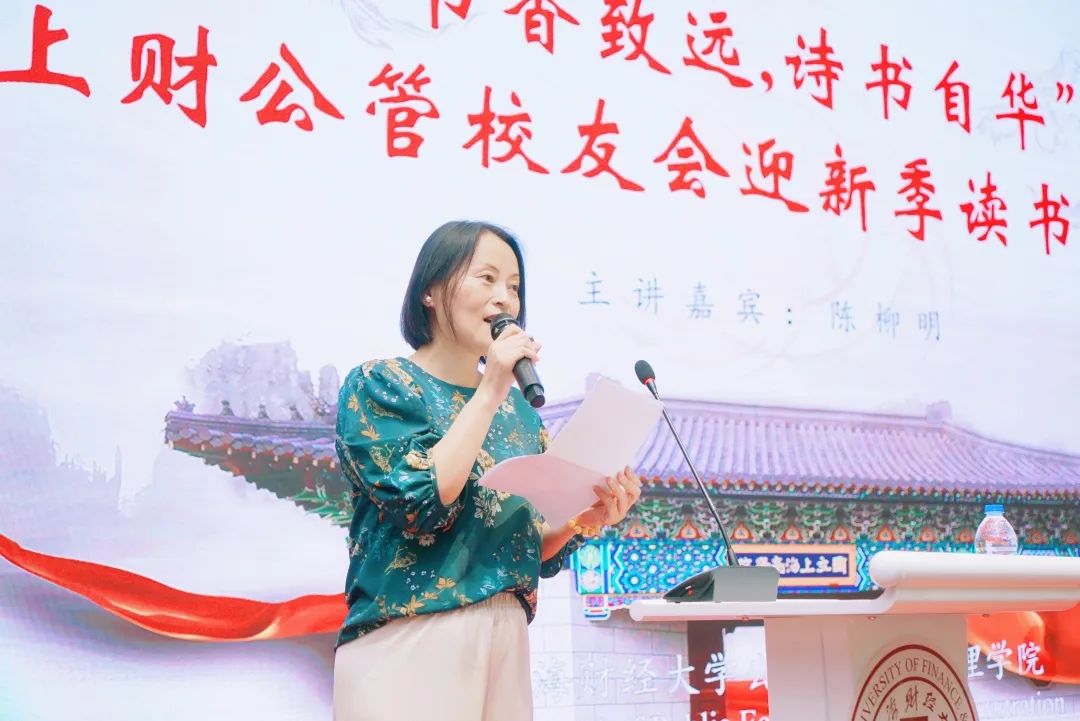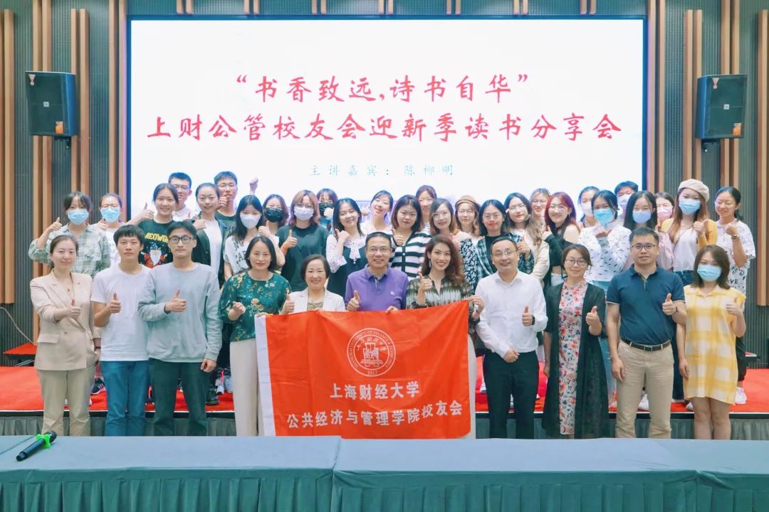 近年来,习近平总书记在多个场合强调读书的重要性,倡导全社会要加强读书学习,“把学习作为一种追求、一种爱好、一种健康的生活方式,做到好学乐学”。为倡导公管学院师生与校友加强阅读,营造浓郁的读书氛围,打造终身学习的理念,上海财经大学公共经济与管理学院校友会文体中心打造了一系列经典阅读活动。2021年9月15日18:30,“书香致远,诗书自华”上财公管校友会迎新季读书分享会于上海财经大学科技园国际会议中心如期举行。上海财经大学常务副校长徐飞、公共经济与管理学院党委书记方芳、合作发展处副处长杨擎宇、财大科技园总经理邓效、公管学院党委副书记周巧和2011级税务专业校友陈柳明等八十余位师生、校友参加了分享会,本次活动由公管学院校友会秘书长邬咏梅主持。