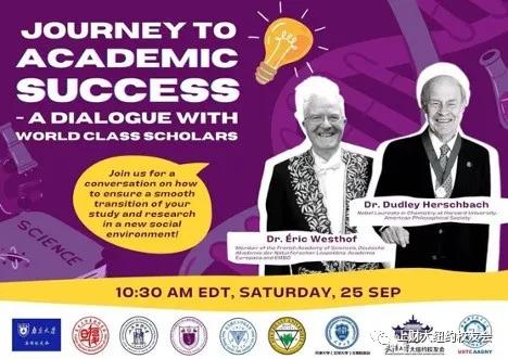 2021年9月25日,上海财经大学美国校友会大纽约分会与来自大纽约地区其他七所高校校友会,以及南京大学法国校友会共同主办了一场主题为“学术成功之路,Journey to Academic Success - A Dialogue with World Class Scholars”的中秋迎新主题交流会。 上财美国校友会孙亚平会长出面邀请到了来自哈佛大学的教授、诺贝尔奖得主Dudley Herschbach博士,南大法国校友会邀请到法国科学院的RNA领域资深院士Eric Westhof博士。两位著名专家学者作为主讲嘉宾,为大家从不同角度分享了他们学术人生的感悟和经验。另外两位特邀嘉宾主持,中国蓝驰创投的副总裁别西博士和纽约西奈山伊坎医学院教授岳振宇博士,与两位主讲嘉宾一起引领大家探讨诸如青年科学家所面临的挑战以及在科研工作中值得培养的优秀品质。 美国东部时间上午10:30,在别西博士的开场致辞中,活动准时开始。