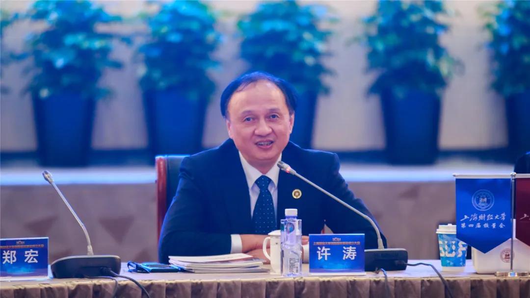 会议最后,许涛主席向与会嘉宾致答谢词。他分别从人才培养、科学研究、社会服务、文化传承创新和国际交流与合作等现代大学的五大职能出发,围绕学校事业发展所需的关键社会资源的视角,从智力支持、财力支撑、平台资源三个维度谈到,在严峻的国内与国际形势背景下,上海财经大学更应厚置家国情怀,发挥学科优势,在国家改革发展进程中肩负起使命和担当,为国家做出应有的贡献。同时,他希望在这个过程中,校董及校董单位能够给予学校更多的关注与支持,学校也将充分发挥校董会的平台作用,加强学校与校董、校董与校董之间的交流和合作,共谋学校发展的新征程。最后,他代表学校对全体校董及校董单位对学校教育事业发展的关心与支持表示衷心感谢,期待各位校董及校董单位与学校携手同行,共谱合作新篇章。