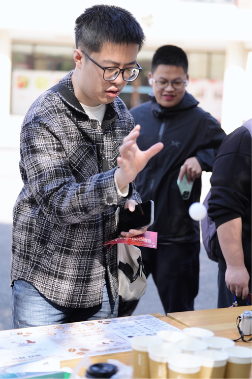 校友们从各地重返校园,感受20年岁月沉淀的独特魅力。游园会现场热闹非凡,校友们不仅收获了温暖的礼物,还体验了各式各样有趣的活动,这些活动是由同学们早早开始筹备和策划的,充满了浓浓的心意。现场,大家积极参与了制作香包、咖啡体验、弓箭打靶等趣味活动,每一项活动不仅让大家感受到了校园的独特魅力,还带来了一份久违的欢乐和共鸣。校友们热情参与各种趣味活动,通过努力集得奖章,并兑换了学院精心准备的20周年限定文创纪念品。