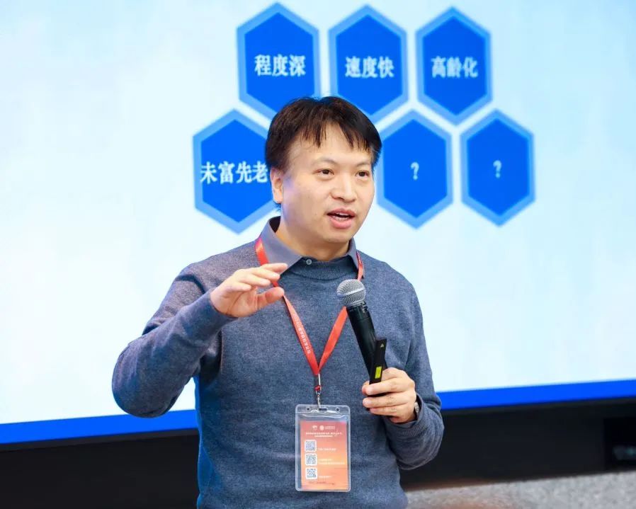 公共经济与管理学院副院长张熠作《人口高质量发展现状和展望》的报告。他从人口老龄化的趋势开始,通过生动的数据图介绍了中国老龄化程度和高龄化程度,从教育,就业,预期寿命,法定退休年龄,生育率等几方面进行分析。他提到了人口流动对人口老龄化区域差异的影响,特别分享了团队的研究成果——人力资本中的队列效应。最后,针对养老金体系和老年照料体系,他提出未来时间节约型的养老技术会越来越重要的观点。