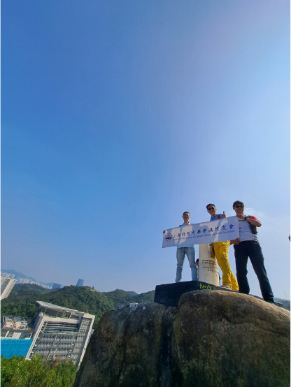 很快大家便到达“红香炉峰”山顶,这座山是香港维港两岸的著名打卡点,大家在山顶上玩的很兴奋也很开心,互相组合摆出各种造型和表情包,这些开心的瞬间被一一记入镜头,仿佛回到学校的青葱岁月。