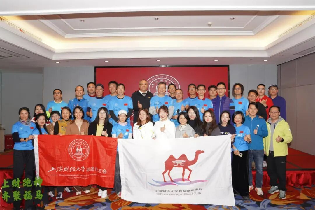 福建代表处林为炎秘书长召集各位在座的上财跑神上台与吕季东总裁合影,为明天的福马呐喊助威。