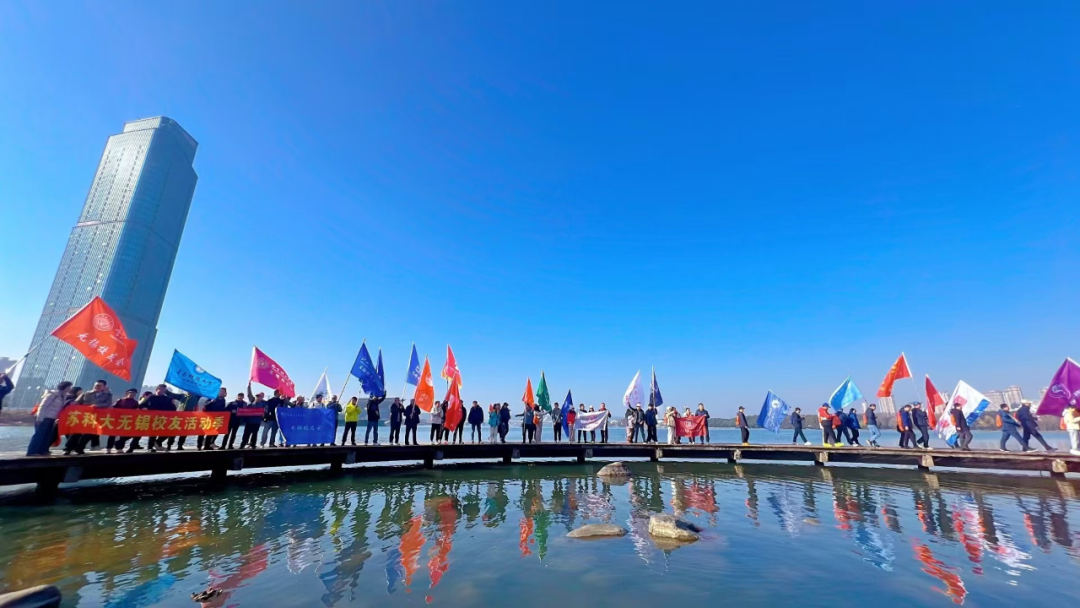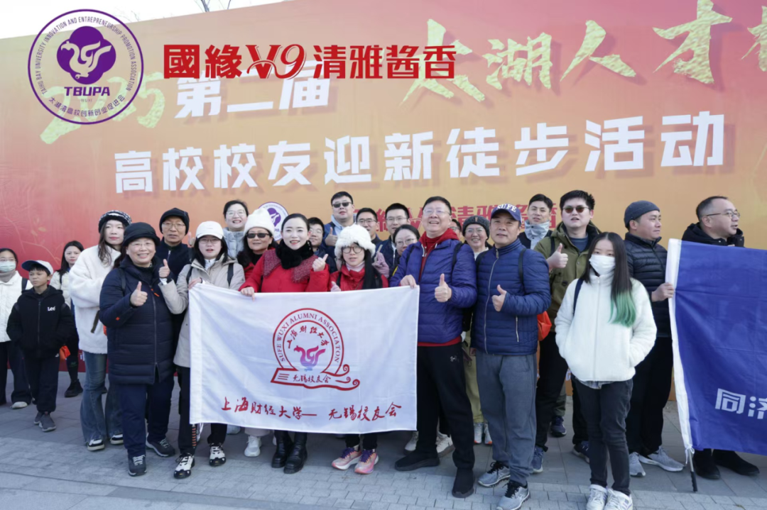 2025年元旦清晨,上财校友会无锡代表处(以下简称:无锡校友会)30多位校友齐聚美丽的蠡湖边,参加校促会组织的“无锡高校校友迎新徒步活动”,校友们在寒风朝阳中一起欢快的迎接新年的到来。