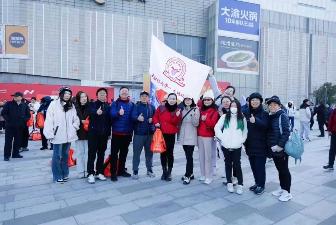 随后,校友们参加了校促会组织的启动仪式,和兄弟高校近500名校友们,一起开始徒步活动。一路上,在校友会会旗的引领下,校友们欢歌笑语,共同畅想美好的新年愿景。