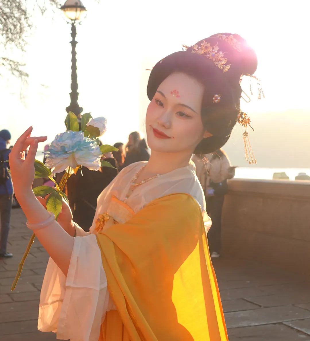所以也是在这个时期我开始接触中华传统服饰-汉服。正逢当时汉服兴起,文化复兴、衣冠先行。后来又自学了非遗缠花和绒花工艺,并在上海思南公馆和第一食品商店授课过。着我汉家衣裳,兴我礼仪之邦!中华文化源远流长博大精深,它既是历史的、也是当代的,既是民族的、也是世界的。习近平总书记近几年来也一直强调中华文化复兴、文化自信。我们作为新时代青年,当守正创新,赓续历史文脉、谱写当代华章。而在海外作为一名游子,我希望能够尽我所能,推动宣传中华传统服饰和文化力量,融通中外文明,讲好中国故事。