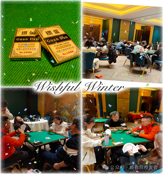 校友理事们的棋牌技能大比拼,将联谊会的气氛推向高潮。理事们一致认为:掼蛋虽然是一种棋牌游戏,却蕴含着不少人生哲理。既需要队友的密切配合,还需要信任队友,才能实现共同目标。游戏虽然有输赢,但我们应当具有胜不骄败不馁的豁达心态,保持谦虚谨慎,不断努力进取。人生亦是如此,无论成功或失败,都应保持正确的心态,不断砥砺前行。