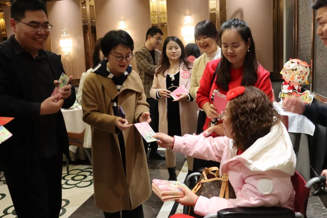 活动现场,已婚校友们笑意盈盈,纷纷掏出利是。大家欢呼着、簇拥着,现场热闹非凡,欢声笑语不断,喜庆氛围被推向高潮 。