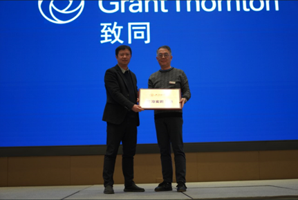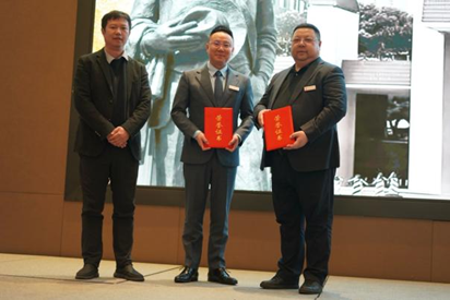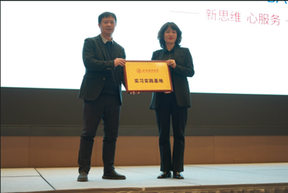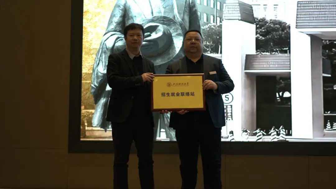 随后,校招生就业处处长彭曦老师发言。他感谢重庆代表处对学校招生就业工作的支持和参与。他为重庆代表处颁发了第一块上海财经大学招生就业联络站牌匾,为沈峰和邱腾峙两位校友颁发招生宣传先进个人奖项,为建设银行市分行、浦发银行市分行、福德生命人寿、致同会计事务所、观韬律所等五家单位颁发了实习实践基地的牌匾。