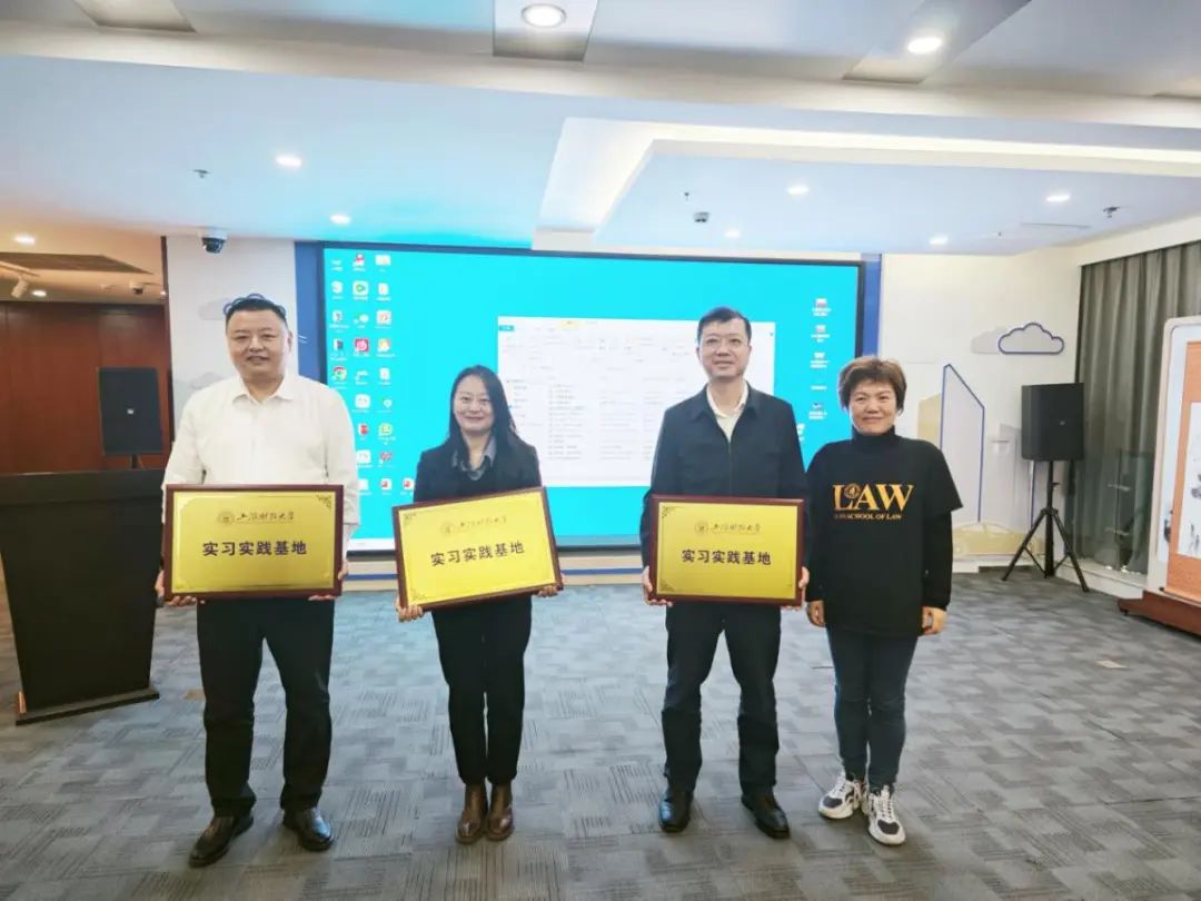 之后,法学院党委书记罗山鸿为交通银行云南省分行、昆明临港科技城、北京大成(昆明)律师事务所授牌,正式建立上海财经大学实习实践基地。嘉宾祁龙军、马巍分别致辞,对学校的信任与支持表示感谢。祁龙军(1996级校友)在发言中提到,学校一直以来在人才培养、学科建设和社会服务等方面取得的卓越成就令人钦佩,他强调这种信任是双方合作的坚实基础,未来将继续携手共进,为教育事业贡献更多力量。马巍主任则表达了对学校在专业领域引领作用的认可,并表示将继续深化合作,协调大成在各地分所与上财的对接、推动双方在更多领域的共同发展,助力学校迈向新的高度。