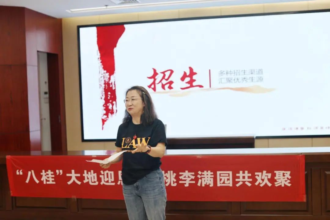 曾坚老师则将目光聚焦于招生宣讲,向广西校友传递上财声音,努力搭建起校友与准校友之间的沟通桥梁。莘莘学子是法学院未来的希望,也是财经法治事业的新生力量。曾老师用一个个生动的案例、一组组详实的数据,让校友们深刻感受到了母校对广西招生工作的关怀与重视,也让他们更加清晰地了解到学校的最新招生概况。