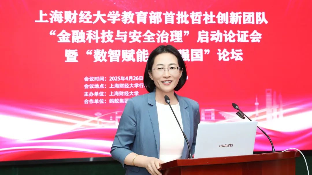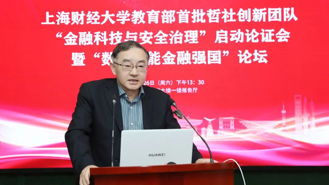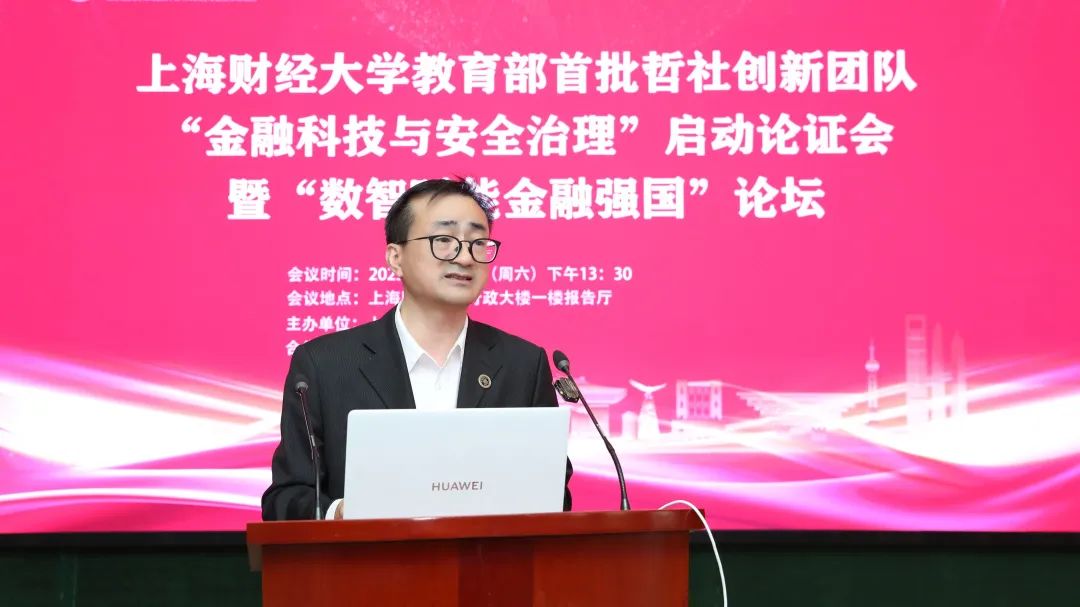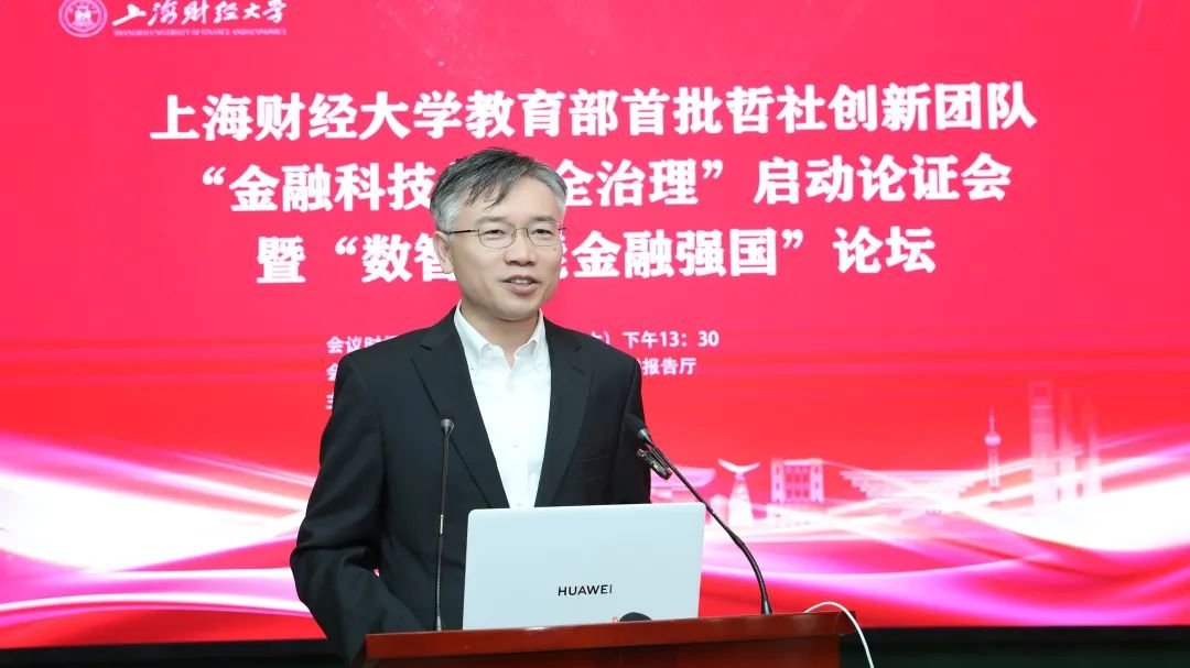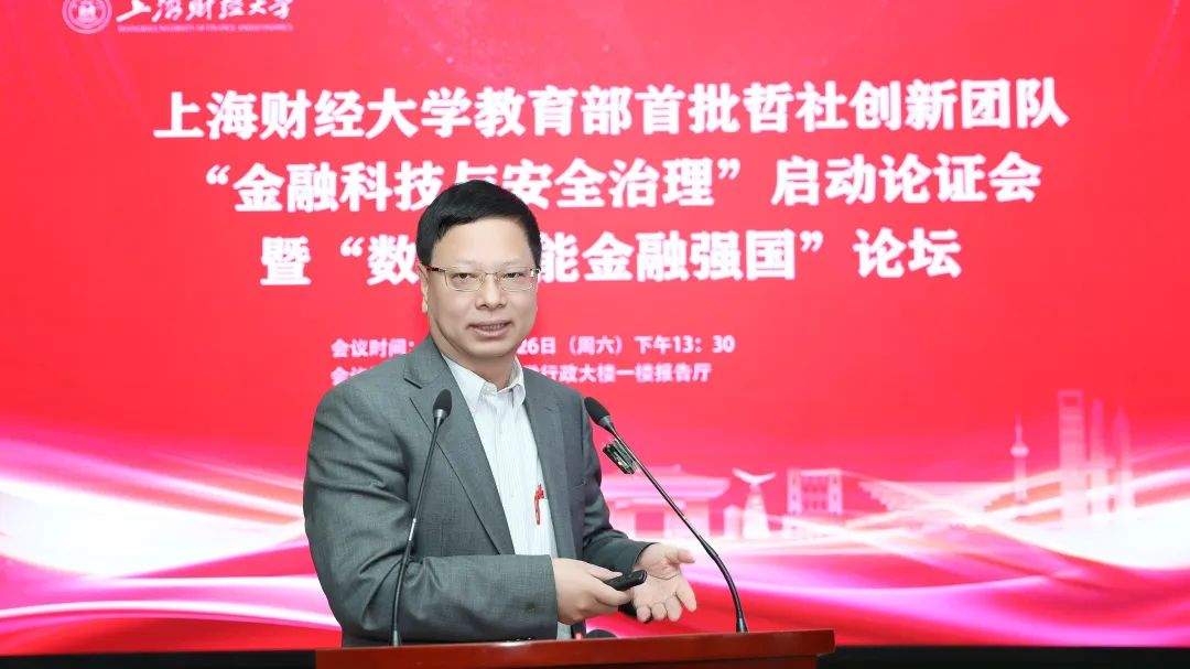 上海财经大学校长、“金融科技与安全治理”创新团队首席专家刘元春出席开幕式并致辞。刘元春校长表示,当前全球经济格局深度调整,新一轮科技革命与产业变革加速重构全球金融生态,中国既面临一系列风险和挑战,又处于防范系统性金融风险的关键时期。“金融科技与安全治理”创新团队的成立充分体现了我校响应国家战略需求、服务金融强国建设的主动担当。团队将聚焦金融科技前沿问题,围绕系统性风险防范、数字技术治理、金融安全机制等核心领域,通过推动经济学、管理学、统计学与数字学科的交叉融合,及有组织科研和产学研协同创新,构建中国金融学自主知识体系。他期待团队以创新驱动发展,在服务国家战略需求、推动研究创新、培养复合型人才、深化多方合作四个方面实现突破,在金融强国建设征程中取得丰硕成果,为全球金融治理贡献“上财智慧”。