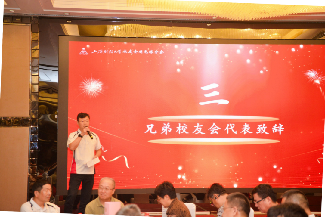 羽毛球分会会长李向锋作表态发言。他承诺将从“贴心服务员、活力宣传员、高效联络员”三个维度发力,带领分会成为校友共享健康、快乐与合作的平台,推动“羽球+行业交流”,凝聚校友力量,服务校友、母校与社会发展。