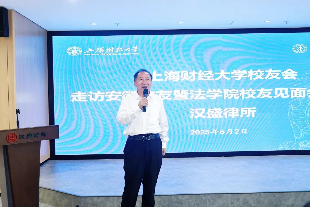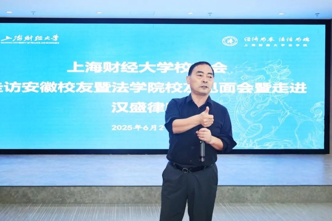 2025年6月2日下午,上海财经大学校友会及法学院一行专程赴安徽省合肥市,成功举办“走访安徽校友暨法学院校友见面会暨走进汉盛律所”活动。本次活动在校友企业上海汉盛律师事务所(合肥分所)举行,由校友占国安、刘传波共同主持,旨在深化母校与安徽校友的情感纽带,凝聚校友力量,共谋发展蓝图。