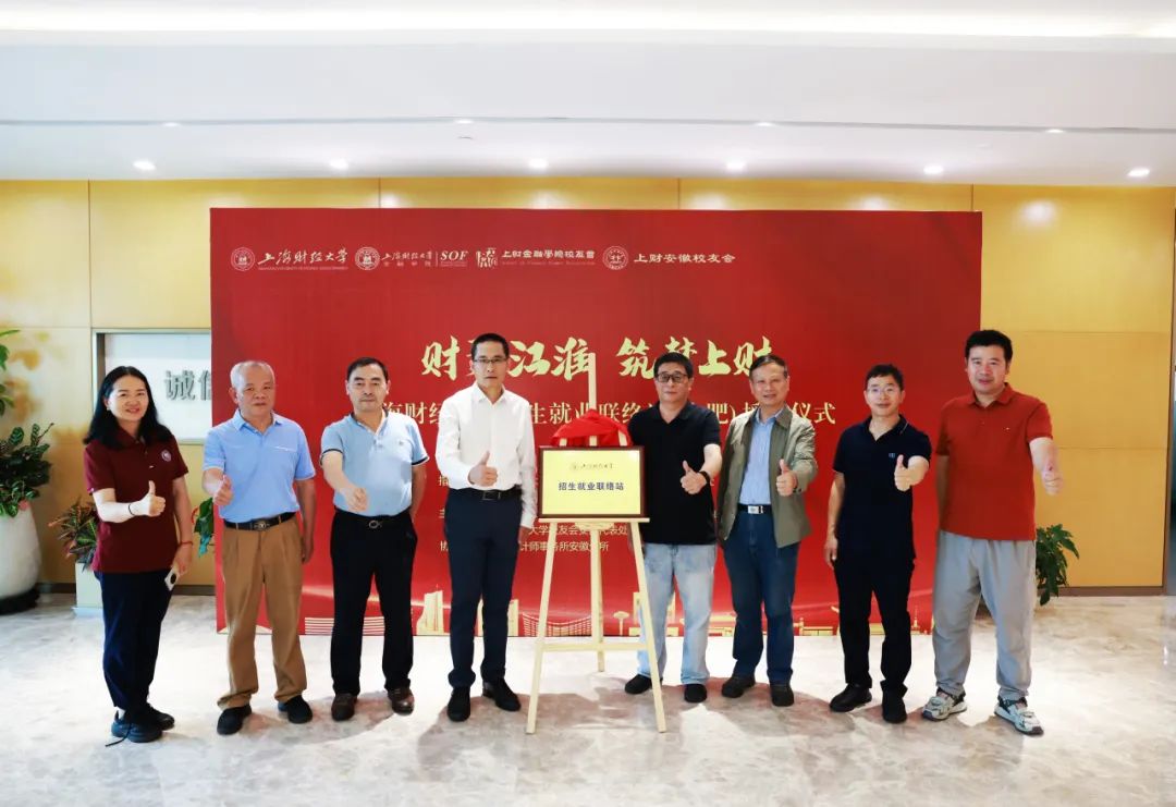 2025年6月7日,上海财经大学校友会及金融学院一行专程抵达安徽省合肥市,隆重举办“财聚江淮 筑梦上财 ——上海财经大学招生就业联络站(合肥)授牌仪式暨校友交流会”活动。本次活动在校友企业、上财合肥招就联络站容诚会计师事务所安徽分所举行,由校友李学琴、王婧婧联袂主持,上财人欢聚一堂,探企拓源、学术交流、擘画未来,以聚力校友共谱母校发展新篇。