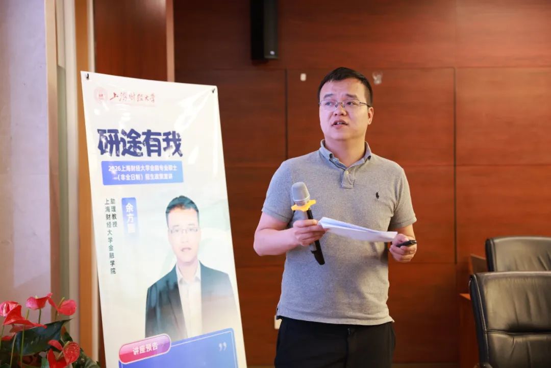 当天下午,金融学院助理教授余方圆以《匡时燃星火,财智耀 “徽” 途》为题,展开金融专业学位硕士(非全日制)项目招生宣讲。立足安徽区域经济发展人才需求,深度解析项目“产教融合、双师育人”的特色优势,为地方财经精英提升专业素养提供优质教育路径,助力构建区域财经人才培养新高地。