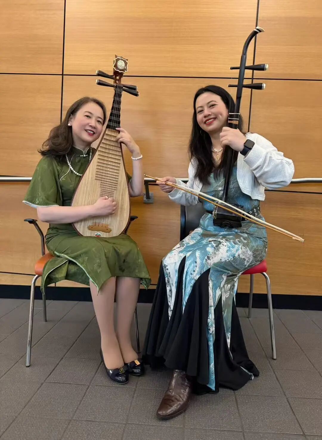 在墨尔本活动现场,杜雅婷、汤怡校友合作为来宾们做了精彩的二胡和琵琶合奏。
