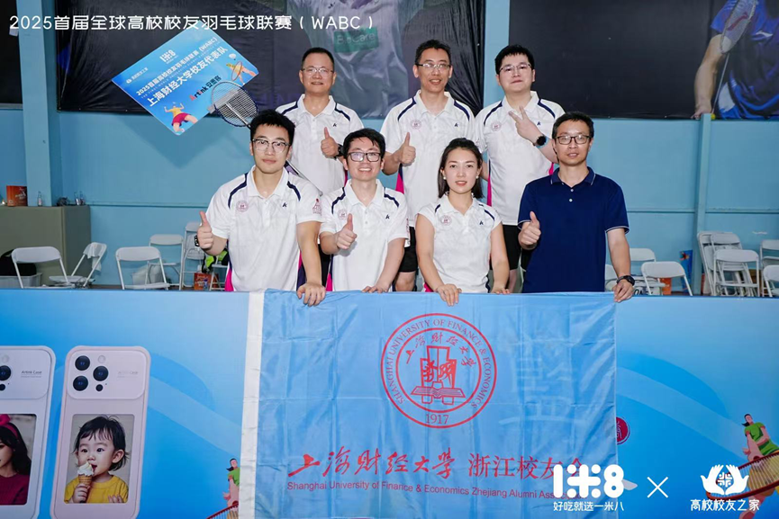 盛夏杭州,羽球飞扬! 6月28日,2025首届全球高校校友羽毛球联赛(WABC)在杭州人工智能小镇火热开赛!57所知名高校的48支校友代表队齐聚杭州,以球会友、共襄盛举。在这场高规格、高水平的校友羽球盛宴中,上海财经大学校友会羽毛球分会携手浙江代表处羽毛球俱乐部共同组成上海财经大学校友代表队,身披“SUFE”战袍,激情挥拍,奋力拼搏,充分展现了上财人的风采与凝聚力,最终荣获2025首届全球高校校友羽毛球联赛最佳组织参与奖。