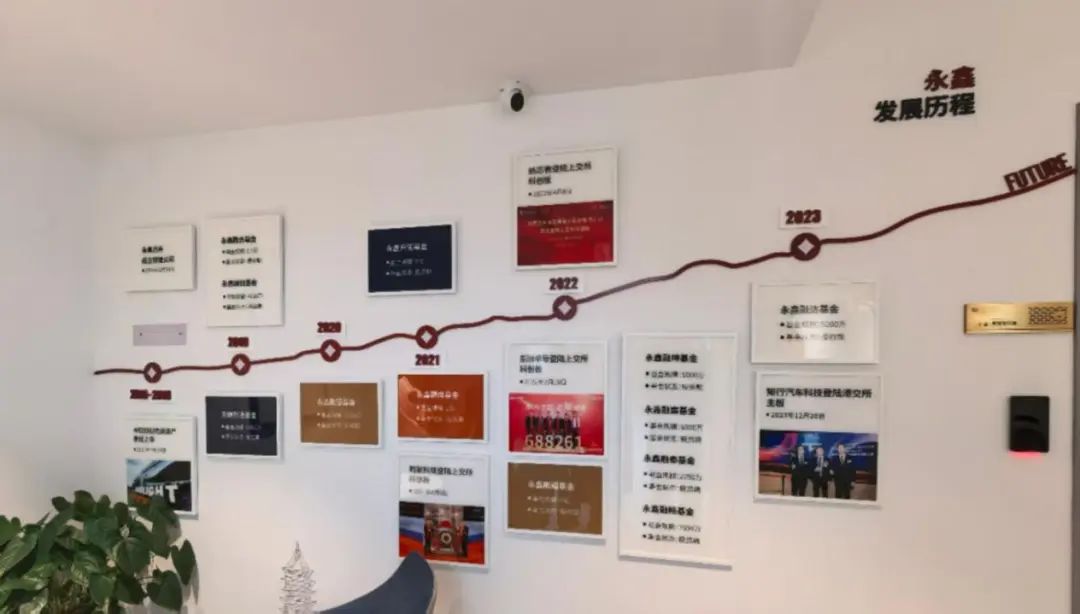 在公司陈列墙区域,王震校友首先向我们全面介绍永鑫集团的发展历史和投资版图,从2015年起,永鑫集团经历10年跨越式发展,管理资金规模达到30亿+,通过投资+赋能,基金+基地的创新破局方式,达成行业内领先的投资管理模式。同时永鑫集团下设永鑫方舟(投资)、研究院(产业+退出)、永鑫蓝桥(招商+申报)、永鑫融煜(人才+管理)、精尚慧(供应链)、财务顾问公司(FA)等多个板块,协同助力企业发展,实践永鑫的宗旨:让创业不再艰难。
