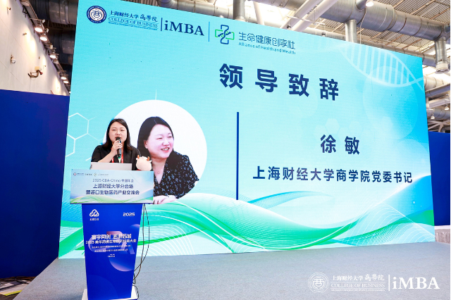 随后,上海财经大学商学院党委书记徐敏致开幕辞,徐书记提到以上财商学院生命健康创享社为代表的平台要通过健康科普、行业研讨、企业赋能、投融资等形式,满足服务师生及校友的健康需求,更助力生命健康产业的创新发展,充分发挥财经人才运用金融资本服务健康产业的作用。