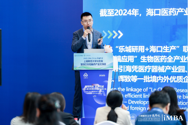 2025年6月27日,由上海财经大学商学院生命健康创享社、海口国际投资促进局、海口国家高新区管理委员会联合主办,上海财经大学校友会商学院分会、上海财经大学校友会iMBA分会、上海财经大学iMBA项目承办,招商银行海口招商局大厦支行协办的“CBA-China年会上海财经大学分会场暨海口生物医药产业交流会”在苏州国际博览中心隆重举行。