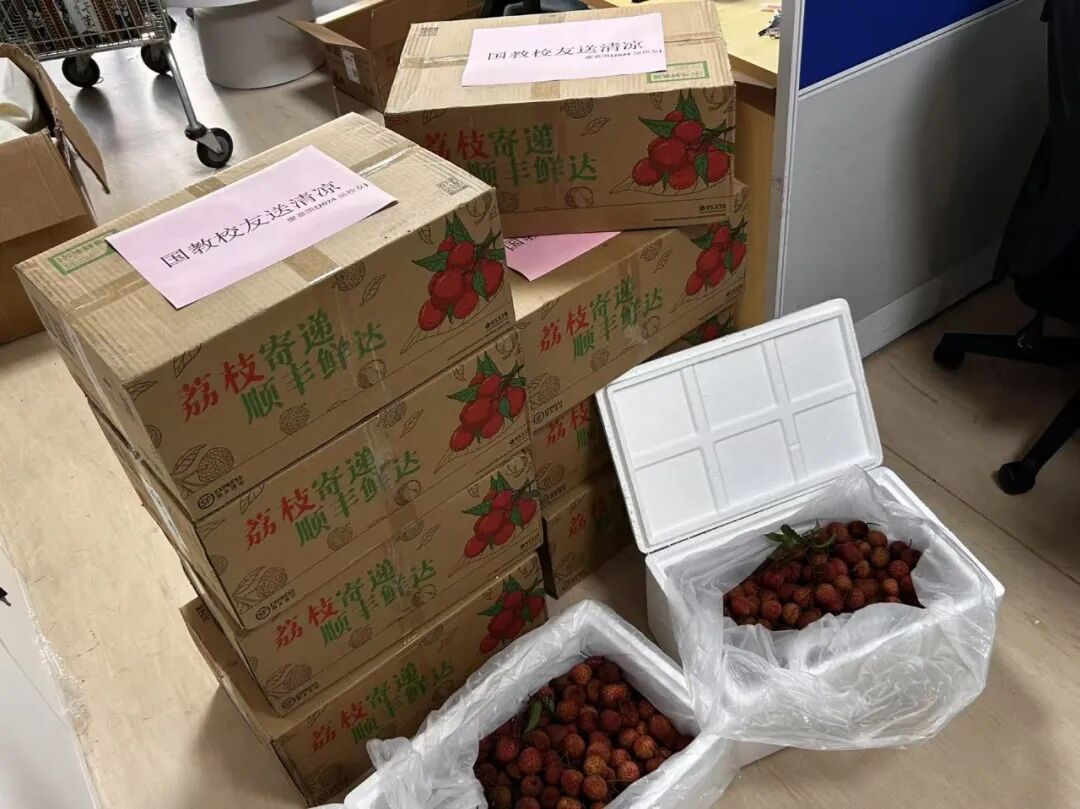 即使身在他乡,校友依旧没有忘记学院。在炎炎夏日,2024届校友廖嘉凯校友特意为学院送来了新鲜的荔枝,以表达对母校的关心和祝福。此次赠送的荔枝饱满多汁,香甜可口,充分展现了校友浓浓的情谊。此次爱心举动不仅传递了校友间的浓厚情谊,也激励在校师生们铭记校友的关爱,继续传承和发扬学院的优良传统。学院会将爱心与关怀传递下去,共同营造温馨和谐的校园氛围。