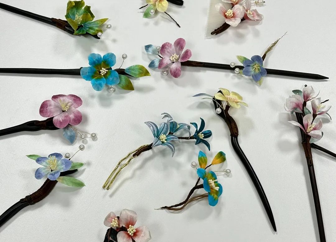 在这场活动中,同学们不仅深入汲取了绒花制作的理论,并且动手实践,打造出了一件件充满传统韵味的非遗绒花发簪。这一过程不仅是技艺的学习与传承,更是对传统文化的一次深刻致敬,为弘扬和延续这份珍贵的文化遗产奠定了坚实的基础。