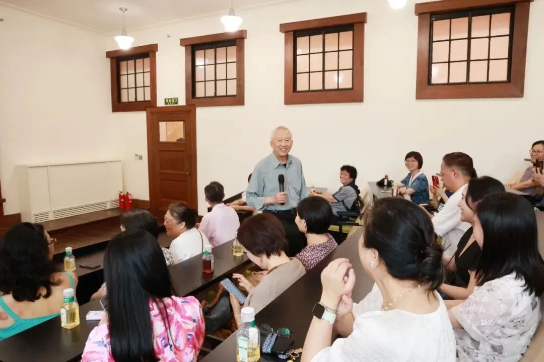 活动伊始,校友们在DIIS研究员的专业引导下踏入雷士德工学院旧址,正式开启这段穿越百年的健康之旅。这座由传奇慈善家亨利·雷士德捐建的工学院,是上海市优秀历史建筑,每一处细节都诉说着上世纪三十年代的工程教育传奇。跟随着专业讲解,校友们漫步于古朴典雅的建筑之中,轻触历经沧桑的砖墙,聆听着亨利·雷士德慷慨传奇的一生及其对教育的卓越贡献。大家驻足于保存完好的阶梯教室,仿佛重回青葱校园时光,在历史与现代的交融里重温同窗记忆。