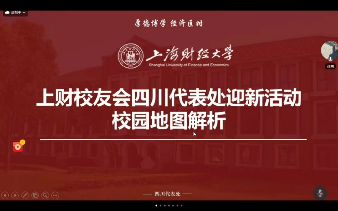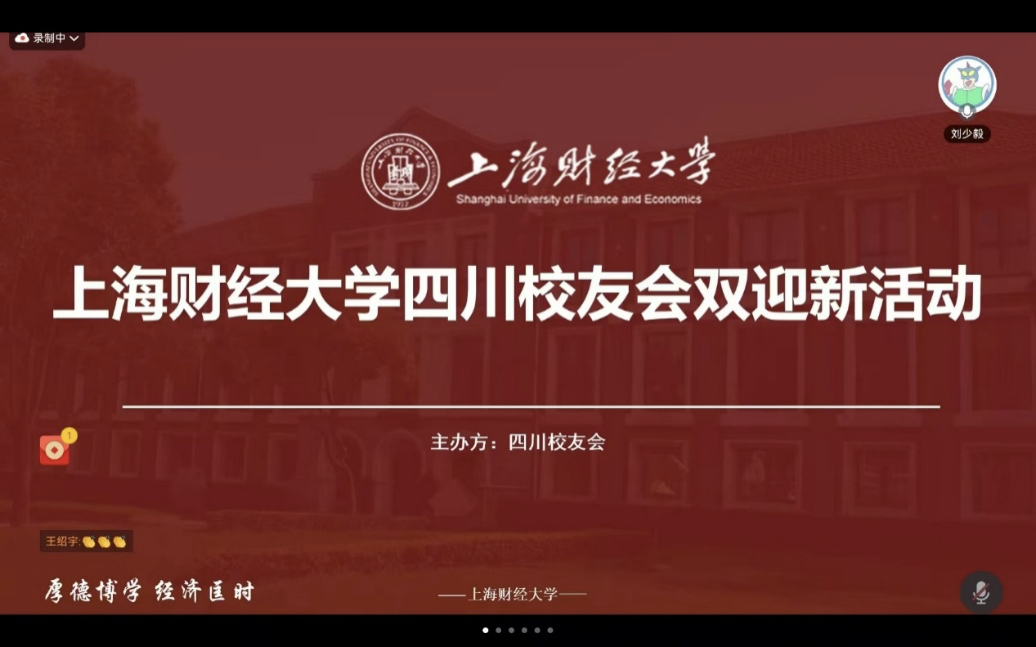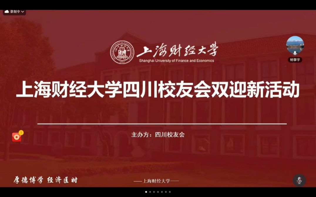 从本次“沪川相连·筑梦上财”云端见面会,不仅是一场面向2025级川籍新生的迎新聚会,更是四川代表处传承上财“厚德博学、经济匡时”校训精神的生动实践。通过线上平台,新老校友跨越地域限制,实现经验传递与心灵联结,为新生开启大学生活注入温暖与力量。活动的顺利举办,特别感谢24级川籍学子刘少毅、张妍、庞志超、余柯静、姜若羲等人的全力支持。未来,上海财经大学校友会四川代表处将持续推出更多优质活动,不断完善校友交流平台,深化川籍校友间的联结与互助,为助力上财校友成长、推动学校与地方发展贡献更多力量。