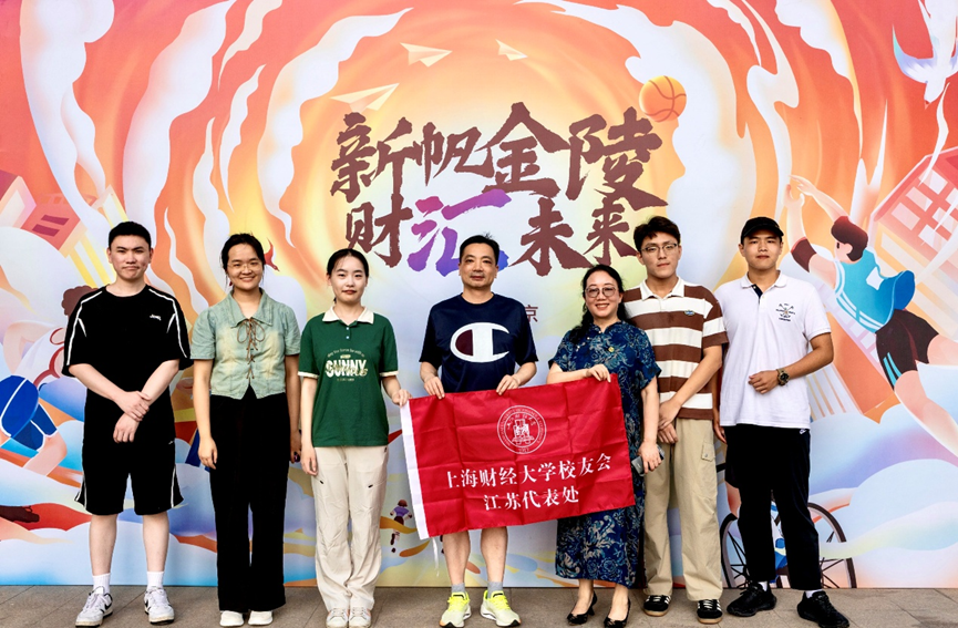 阳光照耀合影阶梯上,新老校友身影层叠:新生如初绽之帆,前辈若护航之锚。上海财经大学江苏代表处会旗上母校的校徽耀眼夺目,恰似这所百年学府的永恒誓言: