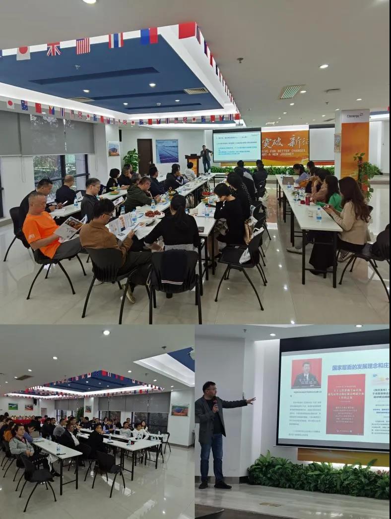 走访过程中,大家参观了清源科技的主楼展厅、办公区域、会客厅等,了解了清源科技的起源、发展、以及未来展望。会议中,由付斌校友为大家分享主题为“碳中和下的社会经济系统化转型思考”,内容丰富详尽,从双碳概念到双碳下的机遇与挑战,从国内市场到国际形势分析,从企业自身利益的获取与社会责任之间的权衡等等,校友付斌慷慨激昂的演说赢得了校友们的掌声与赞赏。