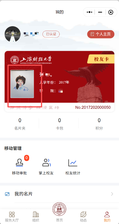 已通过认证的校友,上传个人照片后,可申领电子校友卡。校友分享自己的电子校友卡给其他校友以证明校友身份。后续,校友会秘书处还将依托电子校友卡,持续整合各类资源,为校友提供丰富的的校友服务。