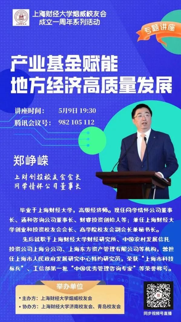 5月9日,烟威校友会与青岛校友会、济南校友会联合举办了“产业基金赋能地方经济高质量发展”的在线主题报告,报告由母校创投校友会会长郑峥嵘主讲。600位校友聆听了讲座,互动过程中交流的内容丰富,观点碰撞出了新的思想,校友受益匪浅。通过这一系列的成立周年庆祝活动,校友之间加强了交流,增进了友谊,获得了新的知识和体验。