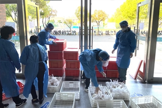 学校防疫物资的运送、搬运、卸载、登记、分发…..每天物资协调组的一线员工都为解决校门到宿舍的最后100米而奔跑前进。物资保障组的程老师说:“我们这批后勤人平均年龄在50岁以上了,我自己是91年进校的,现在已经差不多在校30年了,对学校很有感情,我们虽然觉得很累,但是大家都没有怨言,能够为学校服务,为师生服务,大家都觉得工作做得非常有意义。”