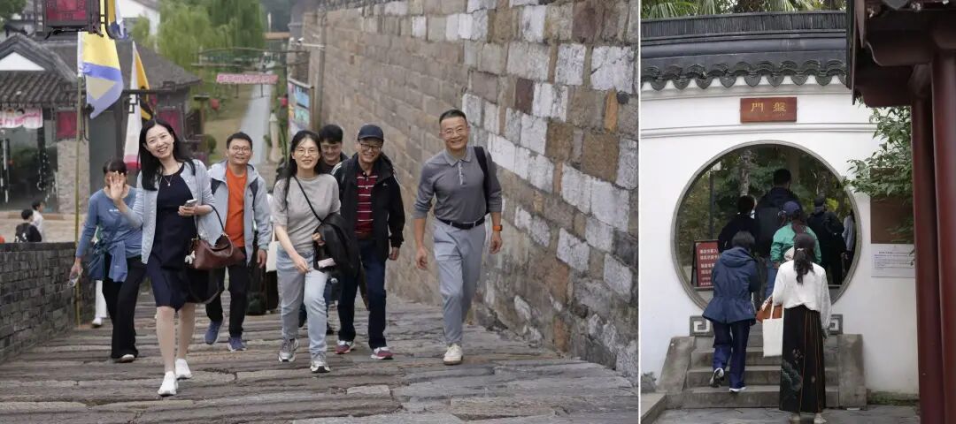 秋日苏州City Walk环节,大家走过了中国现存最完整、最典型的水陆并列古城门—盘门。盘门的水门是苏州古城“河街相邻、水陆并行”城市格局的起点之一。盘门不仅是“看得见的历史”,其实物遗存串联起的吴地军事、水利、城市规划、建筑艺术与文化传承,更是解读苏州古城历史的核心钥匙。