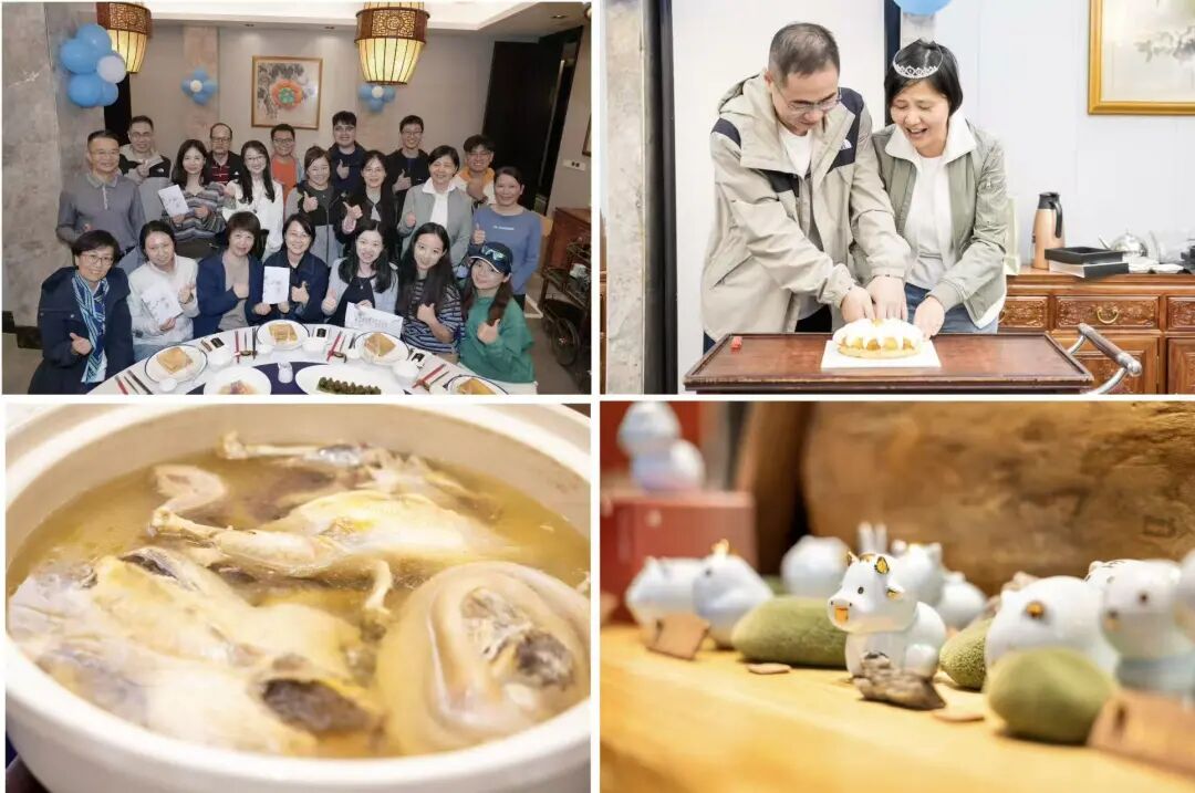 夜幕降临,大家齐聚在精巧雅致的苏州菜馆,在《美食家》文学选段的朗读分享中开启晚宴。校友们还积极参与苏州文化有奖竞答,从“不时不食”的时令哲学到“一菜一格”的匠心底蕴,在对话与品味中深化对苏州饮食基因的理解。活动当天恰逢一位同行校友的生日,活动发起小组特别准备了生日惊喜。当生日歌悠扬响起,温暖的烛光映照着一张张笑意盈盈的脸庞,诚挚的祝福直击心底。这一刻我们是被校友情谊紧紧包裹的“家人”。