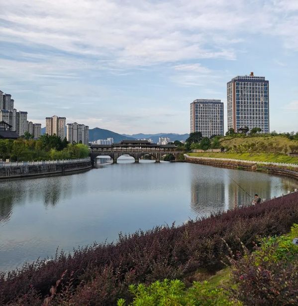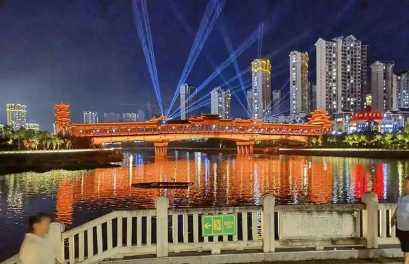 吃饱喝足再沿着翠江散步而回。灯光秀美得如梦如画。小城立秋,自带惬意。